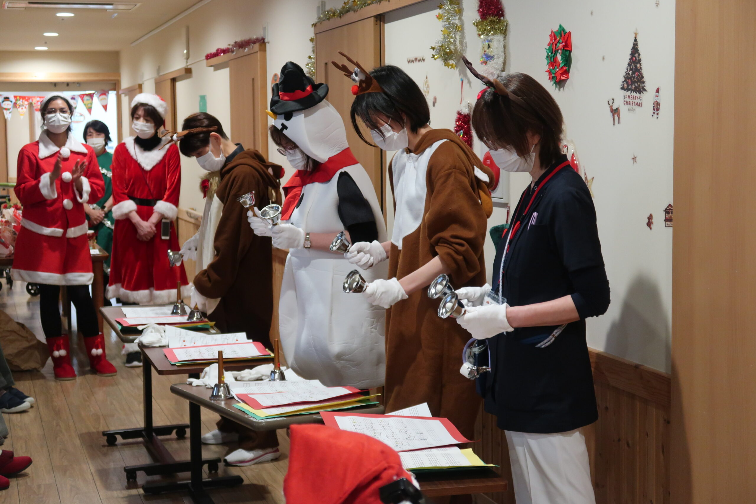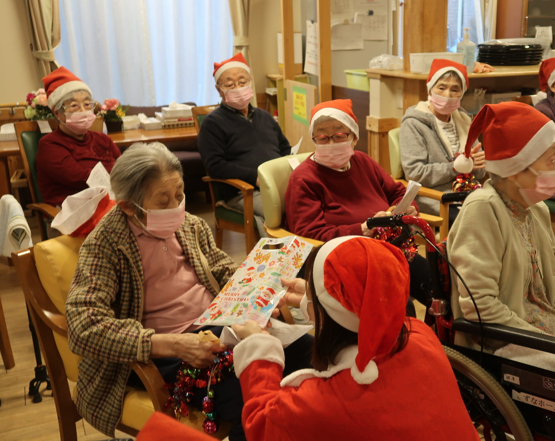 先日きずなホームでは、クリスマス会を開催いたしました。 クリスマスソングを歌ったり、ハンドベル演奏を聴いたりと楽しい時間を過ごしました🎅 サンタクロースからのプレゼントもありました🎁