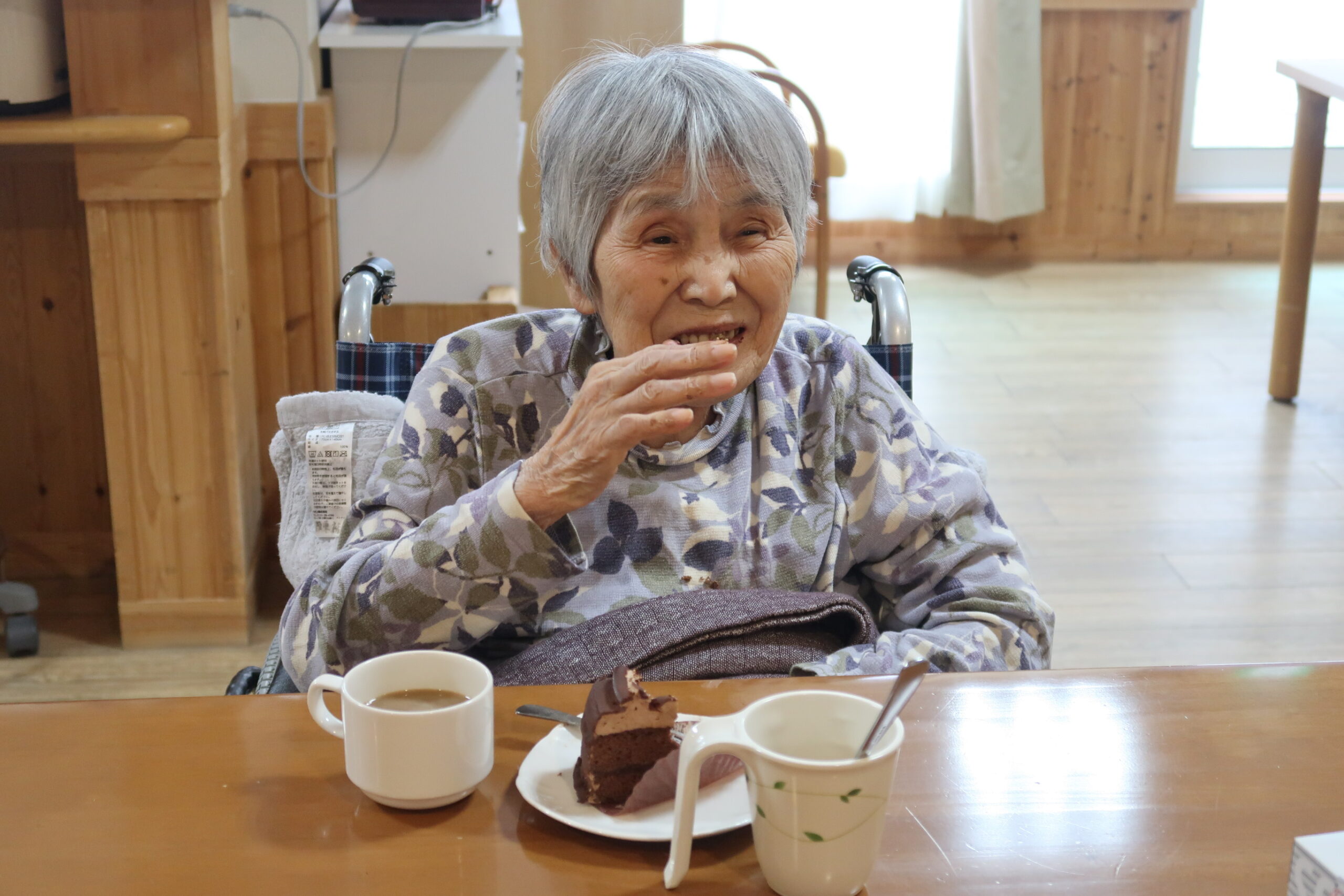 この日のおやつはクリスマスケーキ🍰でした。 皆様、とても美味しそうに召し上がられていました。